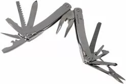 Le Victorinox SwissTool Spirit X Plus est le petit frĂšre du SwissTool. Le Spirit offre 24 fonctions. La pince multifonction est entiĂšrement faite en acier inoxydable poli. Ce Spirit est livrĂ© dans un Ă©tui en cuir avec boucle ceinture. Cet Ă©tui costaud permet d’accrocher facilement le SwissTool Ă la ceinture. La fermeture velcro est trĂšs facile Ă utiliser. De quoi ranger et transporter cette pince multifonction en toute facilitĂ©.